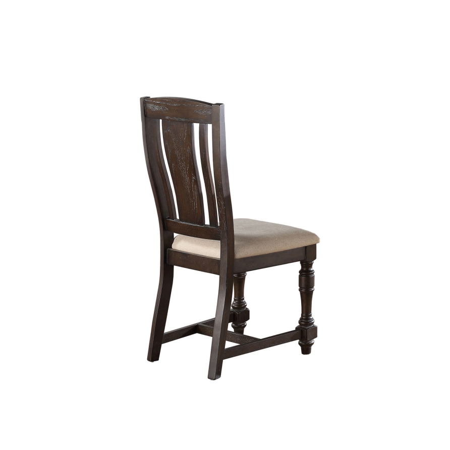 Gorgeous limed Gray or Espresso finishes enhance the contrasted oak wood grain of these grand tables. Mix and match upholstered and slat back chairs for an eclectic look.