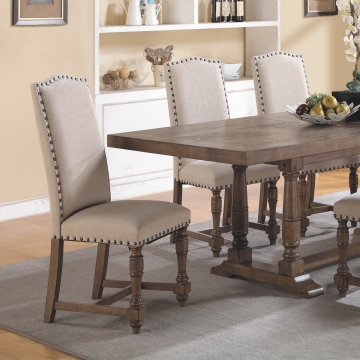 Gorgeous limed Gray or Espresso finishes enhance the contrasted oak wood grain of these grand tables. Mix and match upholstered and slat back chairs for an eclectic look.