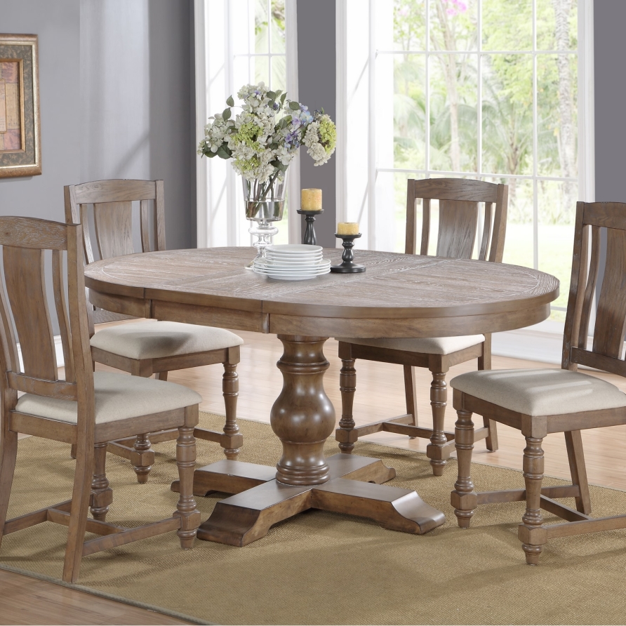 Gorgeous limed Gray or Espresso finishes enhance the contrasted oak wood grain of these grand tables. Mix and match upholstered and slat back chairs for an eclectic look.