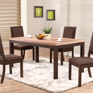 Clean, substantial dining style with contemporary walnut veneer and solid hardwood in a striking two-tone finish.