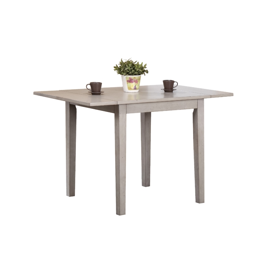 Solid hardwood and clean functional design. Muted oyster grey offers a strong, simple dining room foundation suited for small to large areas with standard or counter height options.