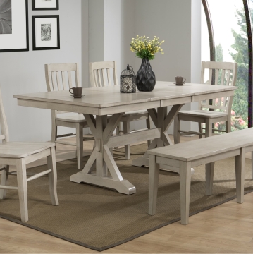 Solid hardwood and clean functional design. Muted oyster grey offers a strong, simple dining room foundation suited for small to large areas with standard or counter height options.