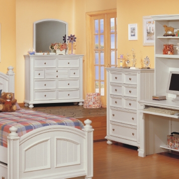 Classic New England style in 3 finishes. This beautiful collection is accentuated by the generous use of moldings and wainscot paneling. Heavy drawer construction with English and French dovetailing.