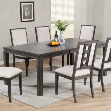 Chic contemporary dining in a deep washed grey birch veneer. Geometric design elements combine smart styling with a high end finish.