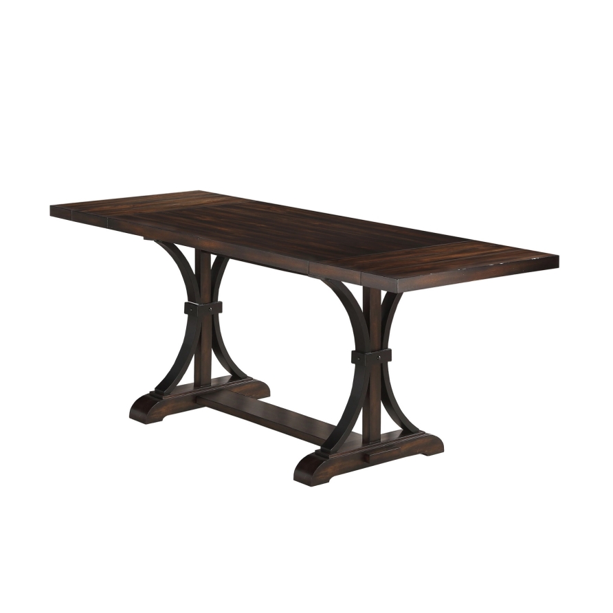 Crafted from acacia veneer and solid hardwood, the Montreal collection makes a statement in your formal dining room. Wrought iron and solid wood give this large table a strong, substantial base.