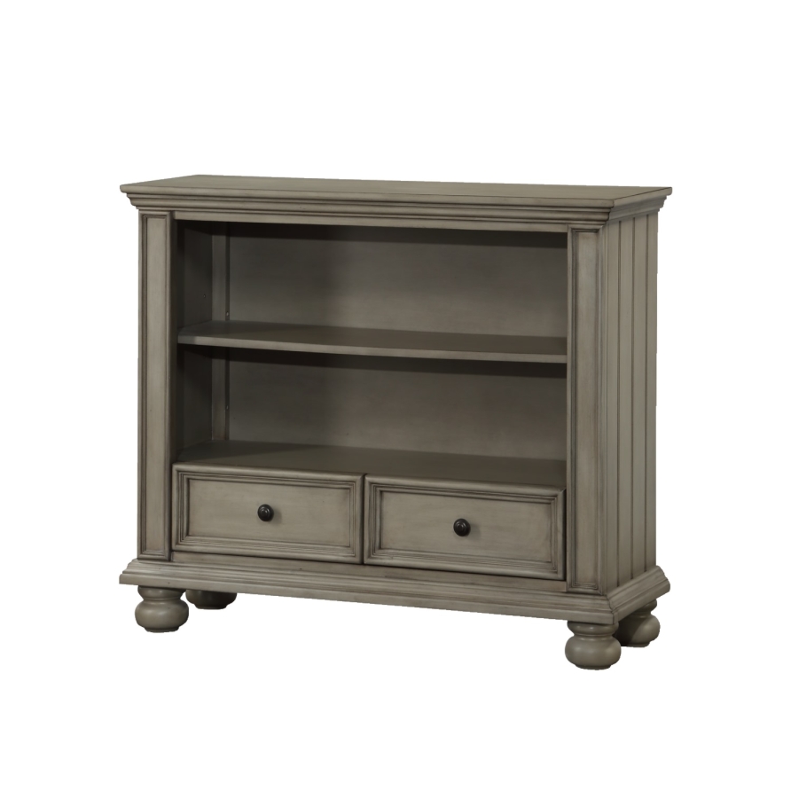 New England style with wainscoting, turned bun feet, and turned finials Unfussy, classic design in a new neutral: khaki grey.