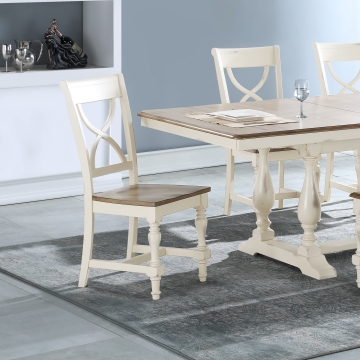Solid birch and solid hardwood with curves in all the right places. Soft two toned grey and white in a wide range of table styles and wood or cushioned seating.