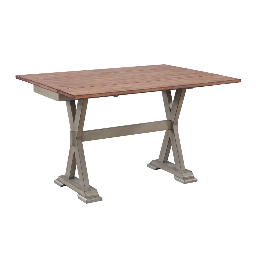 - Two 9" drop leaves expand table top from 18", 27" to 36"