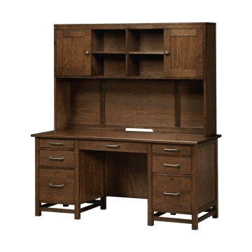 Rich, dark brown oak veneer, oak solids, and engineered wood with antique-style hammered hardware for an enduring, timeless home office look. Constructed to handle even heavy commercial use, these heirloom quality pieces are built to last.