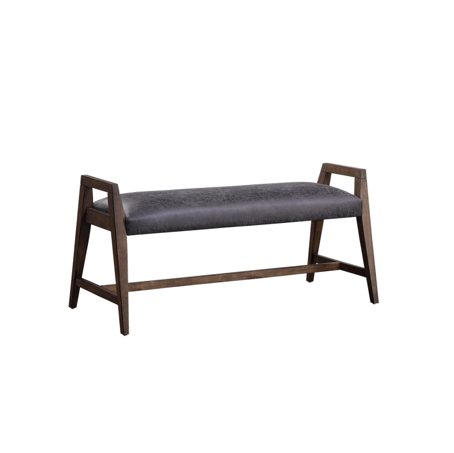 Chic acacia veneer in a rustic herringbone pattern sits atop a sturdy metal frame and legs. Two chair styles create completely different looks.