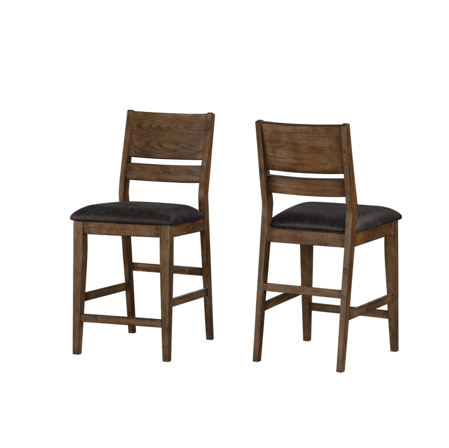 Chic acacia veneer in a rustic herringbone pattern sits atop a sturdy metal frame and legs. Two chair styles create completely different looks.