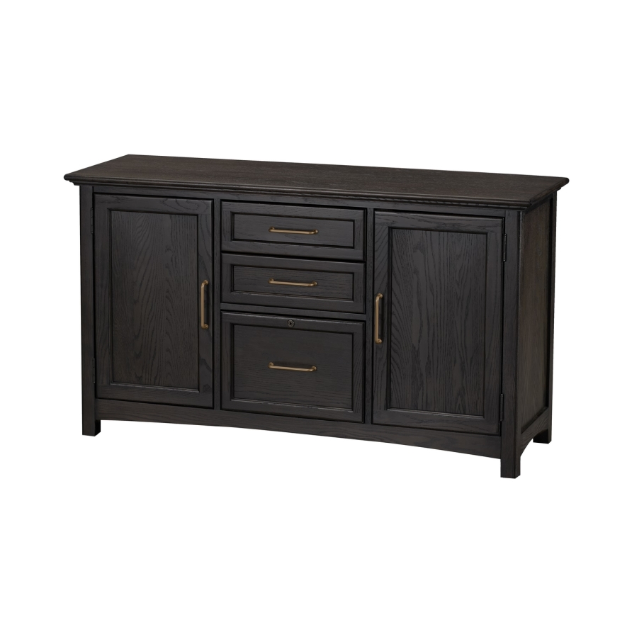 Oak veneer and solid hardwood in traditionally-inspired charcoal finished home office. Delicate curves lend softness to this unfussy design, with all of the features Winners Only home office is known for.