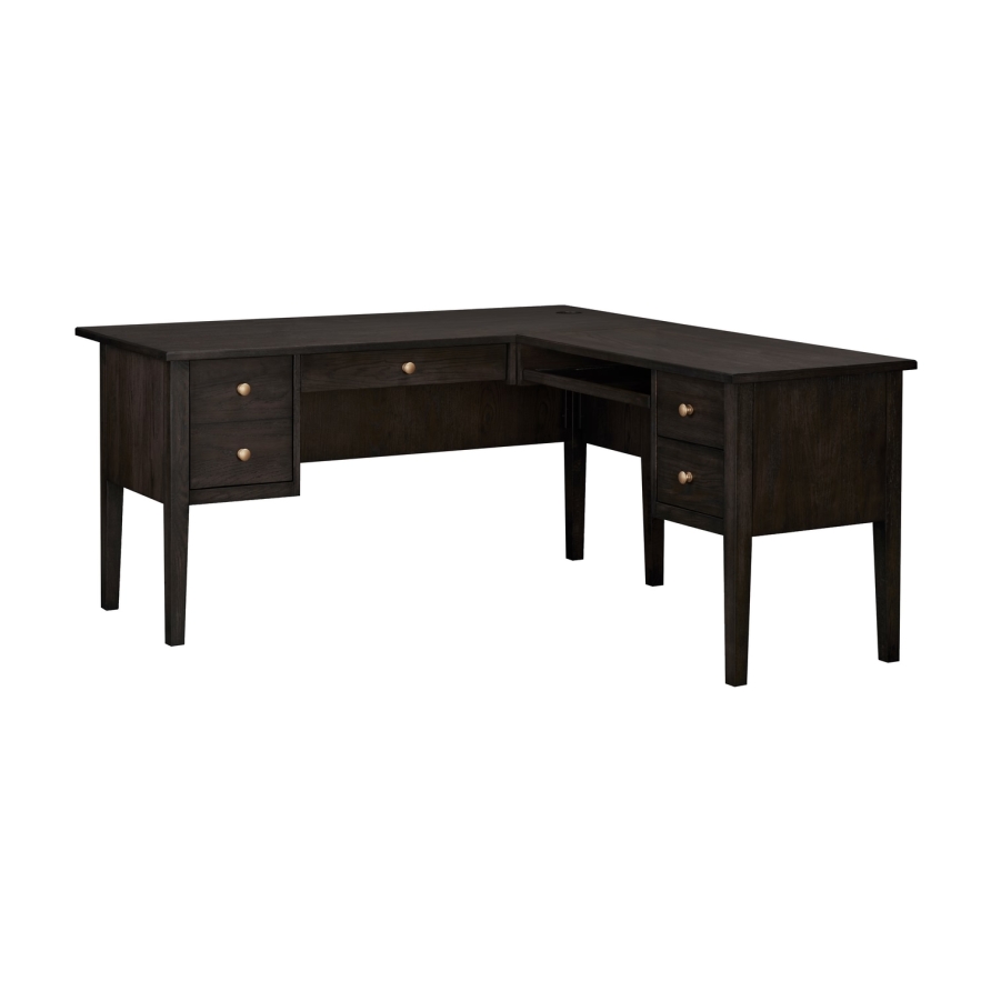 - Return desk with 2 drawers (Dimensions: 9.5"W x 13.5"D x 4.5"H each) and 1 keyboard pullout (Dimensions: 24.25"W x 14.25"D x 1.25"H)