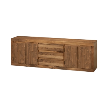 A touch of vintage style in a modern package. Push-to-open doors and drawers add convenient functionality to well-built, minimalist design. Natural walnut veneers and solids develop lighter honey tones over time.