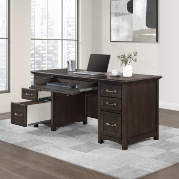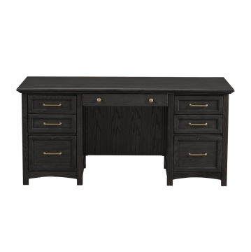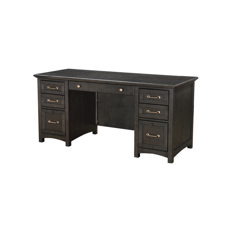 Oak veneer and solid hardwood in traditionally-inspired charcoal finished home office. Delicate curves lend softness to this unfussy design, with all of the features Winners Only home office is known for.
