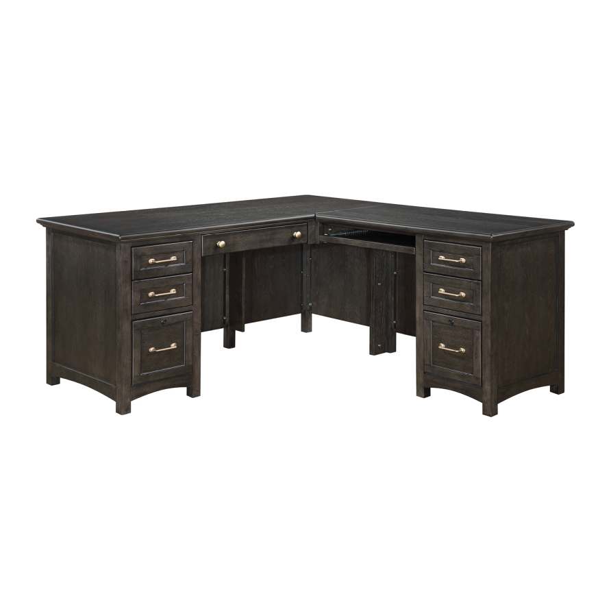 Oak veneer and solid hardwood in traditionally-inspired charcoal finished home office. Delicate curves lend softness to this unfussy design, with all of the features Winners Only home office is known for.