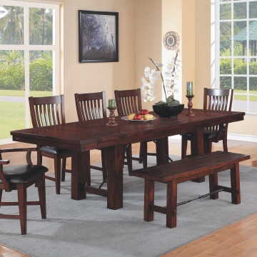 Inspired by the Industrial Age, the Retreat satisfies family and guest with good looks and functionality. Mango veneer and solid hardwood with a rich, hand-rubbed mango finish. Black turnbuckle accents add strength and stability.