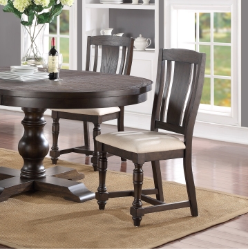 Gorgeous limed Gray or Espresso finishes enhance the contrasted oak wood grain of these grand tables. Mix and match upholstered and slat back chairs for an eclectic look.