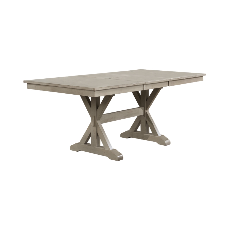 Solid hardwood and clean functional design. Muted oyster grey offers a strong, simple dining room foundation suited for small to large areas with standard or counter height options.