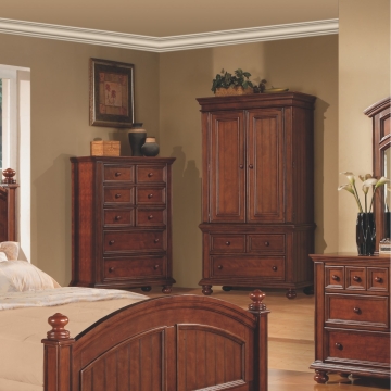 Classic New England style in 3 finishes. This beautiful collection is accentuated by the generous use of moldings and wainscot paneling. Heavy drawer construction with English and French dovetailing.