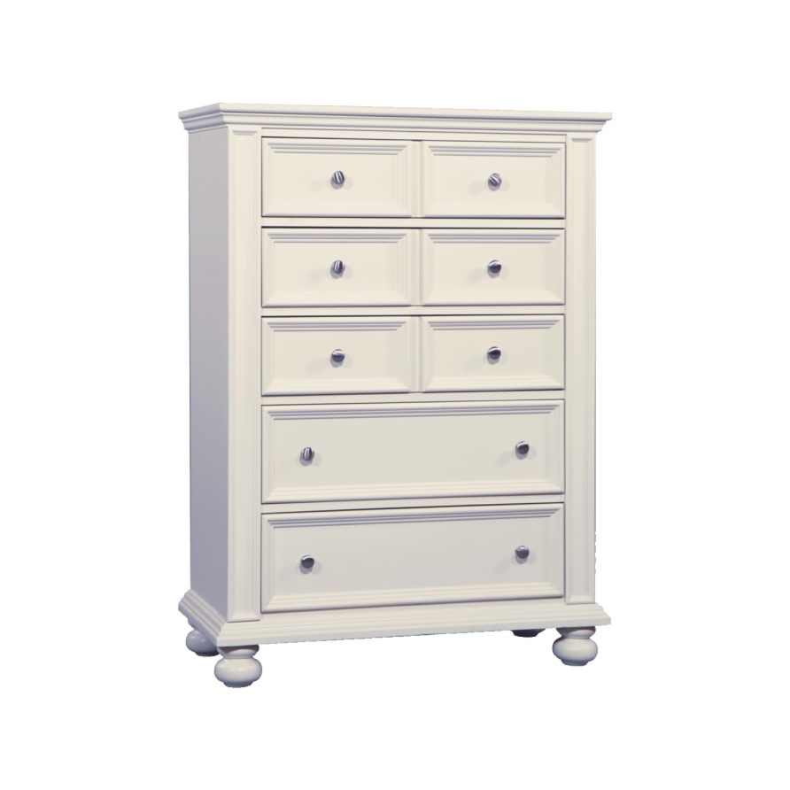 Classic New England style in 3 finishes. This beautiful collection is accentuated by the generous use of moldings and wainscot paneling. Heavy drawer construction with English and French dovetailing.