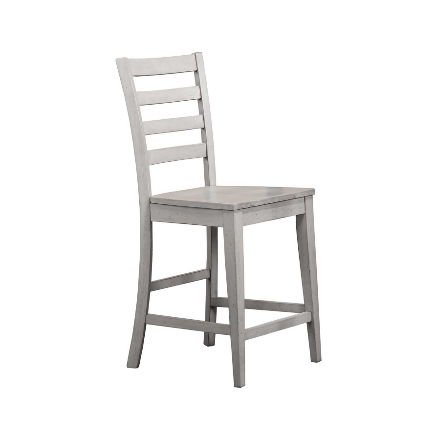 Solid hardwood and clean functional design. Muted oyster grey offers a strong, simple dining room foundation suited for small to large areas with standard or counter height options.
