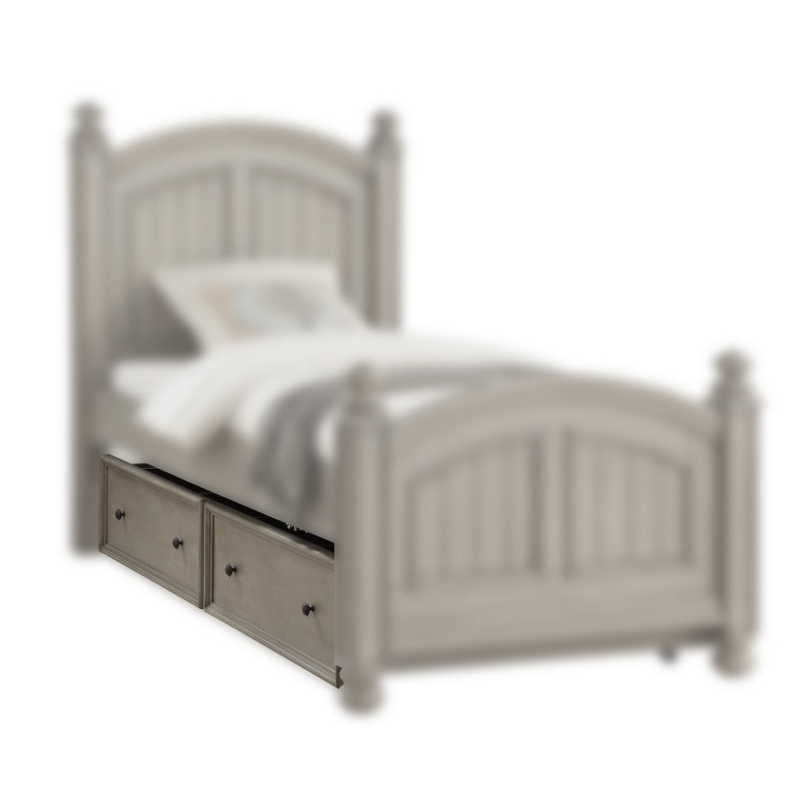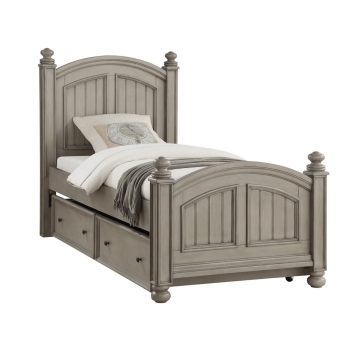New England style with wainscoting, turned bun feet, and turned finials Unfussy, classic design in a new neutral: khaki grey.