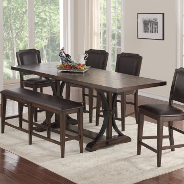 Crafted from acacia veneer and solid hardwood, the Montreal collection makes a statement in your formal dining room. Wrought iron and solid wood give this large table a strong, substantial base.