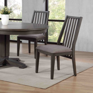 Chic contemporary dining in a deep washed grey birch veneer. Geometric design elements combine smart styling with a high end finish.