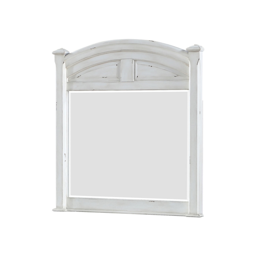 Heavily distressed pine veneer, pine solids, and engineered wood in an antique white finish, and equally at home with farmhouse or coastal styles.