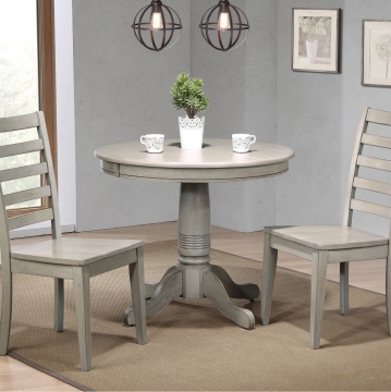 Solid hardwood and clean functional design. Muted oyster grey offers a strong, simple dining room foundation suited for small to large areas with standard or counter height options.