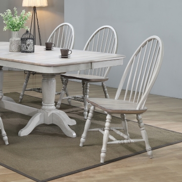 Solid hardwood in a subtle two-toned oat and grey. The soft neutrals contrast beautifully with any color decor.