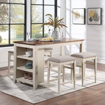 Solid hardwood in a subtle two-toned spice and white. The soft neutrals contrast beautifully with any color decor.