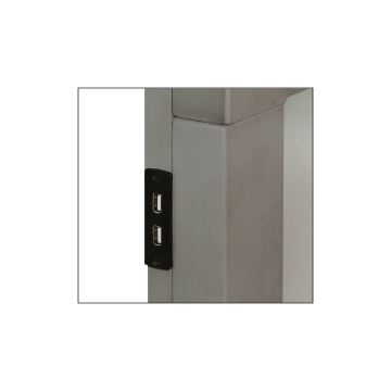 - 1 USB charger on left headboard leg