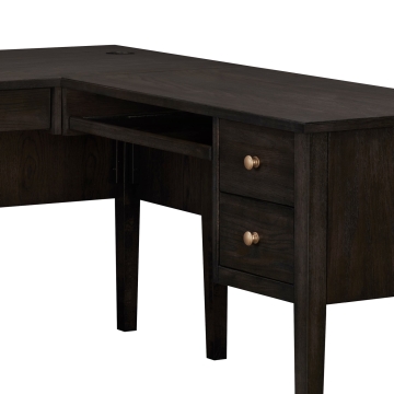 - Return desk with 2 drawers (Dimensions: 9.5"W x 13.5"D x 4.5"H each) and 1 keyboard pullout (Dimensions: 24.25"W x 14.25"D x 1.25"H)