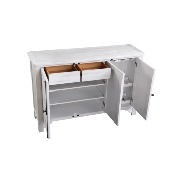 - 2 fixed shelves behind left 2 doors, measure between shelves: 8"