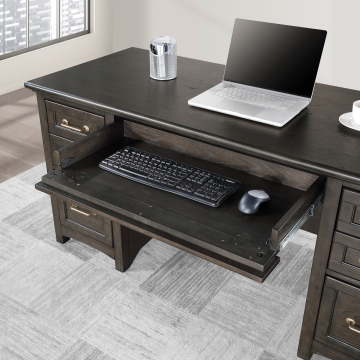 Oak veneer and solid hardwood in traditionally-inspired charcoal finished home office. Delicate curves lend softness to this unfussy design, with all of the features Winners Only home office is known for.