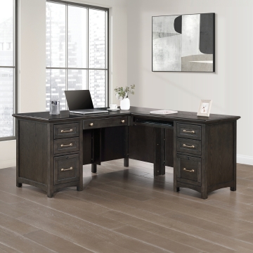 Oak veneer and solid hardwood in traditionally-inspired charcoal finished home office. Delicate curves lend softness to this unfussy design, with all of the features Winners Only home office is known for.
