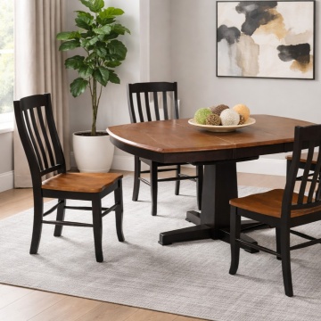 Handsome and affordable solid hardwood dining with contemporary styling. Tables feature a self-storing butterfly leaf.